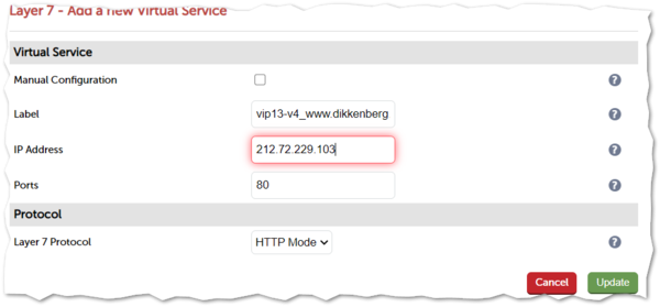 - 1) Vervang hier de naam van virtual service. Standaard is dat VIP(nr) naam.url.nl-v4 (of v6 bij IPv6) (let op : geen spatie tussen vip en het nummer van de vip)
